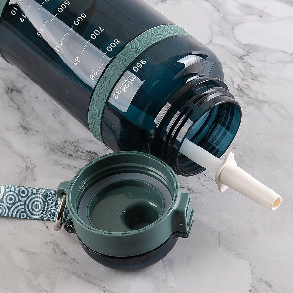 1000ml運動水瓶-Tritan彈蓋式吸管杯-附掛繩-可印LOGO