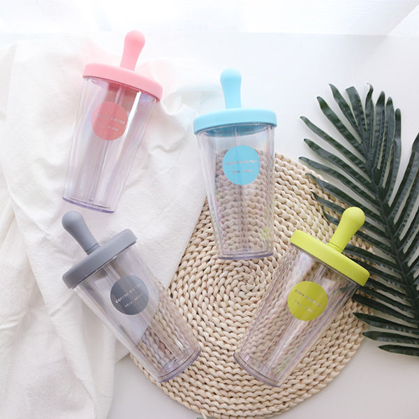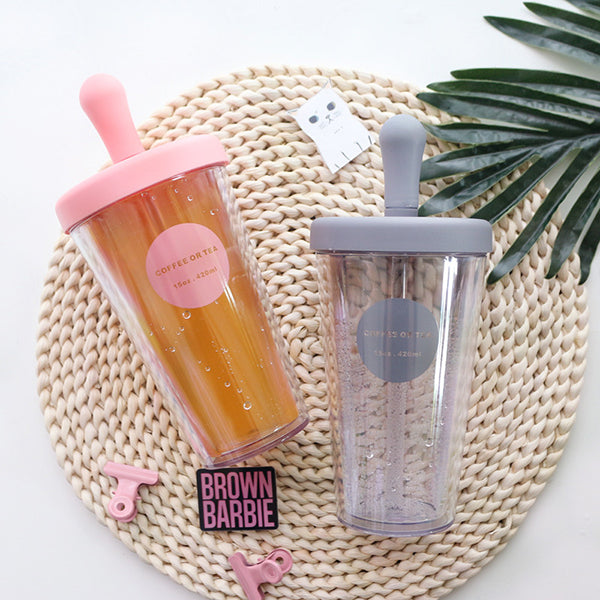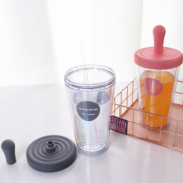 1. 420ml雙層防漏塑膠吸管杯,尺寸為91*208mm,容量達420ml,適合辦公室、學校或戶外使用,方便攜帶。