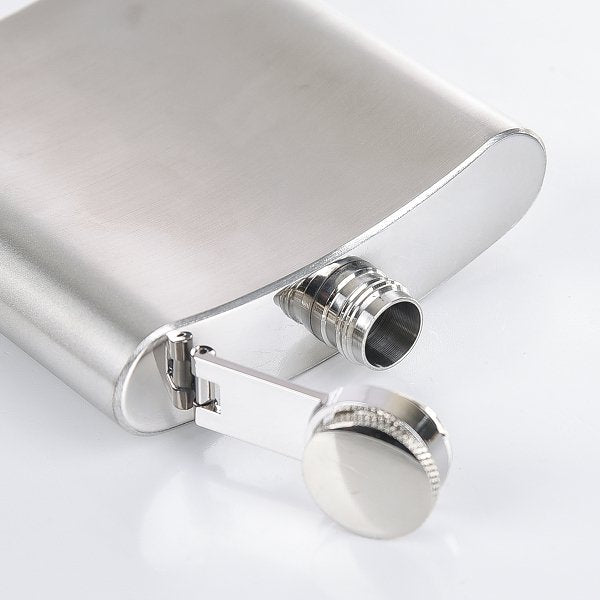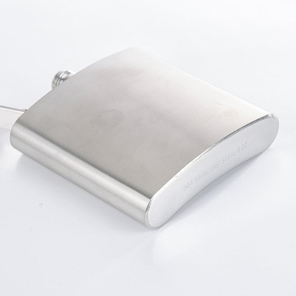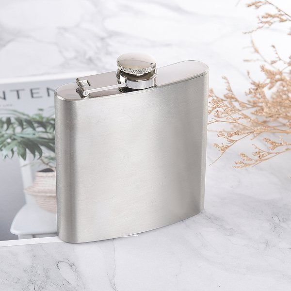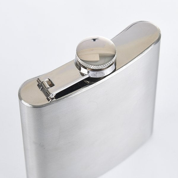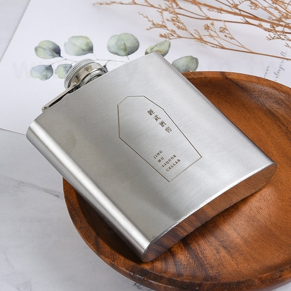 1. 原色304不鏽鋼酒壺-6oz,採用304不鏽鋼材質,耐用且不易生鏽,品質可靠。容量6oz,適合商務會議及派對活動使用。