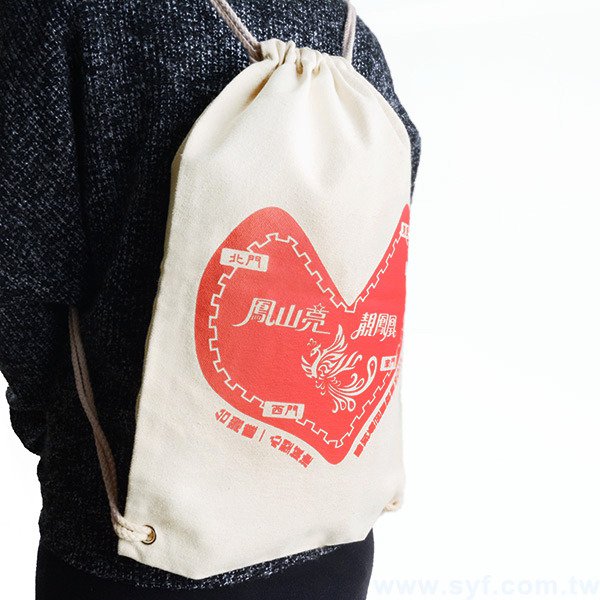 帆布束口後背包-厚度14oz-尺寸W28*H43-單色單面-可客製化印刷LOGO