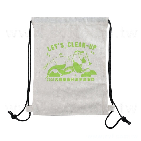 米色帆布束口袋後背包-厚度12OZ-尺寸W30*H40-單面單色印刷-可客製化印刷LOGO