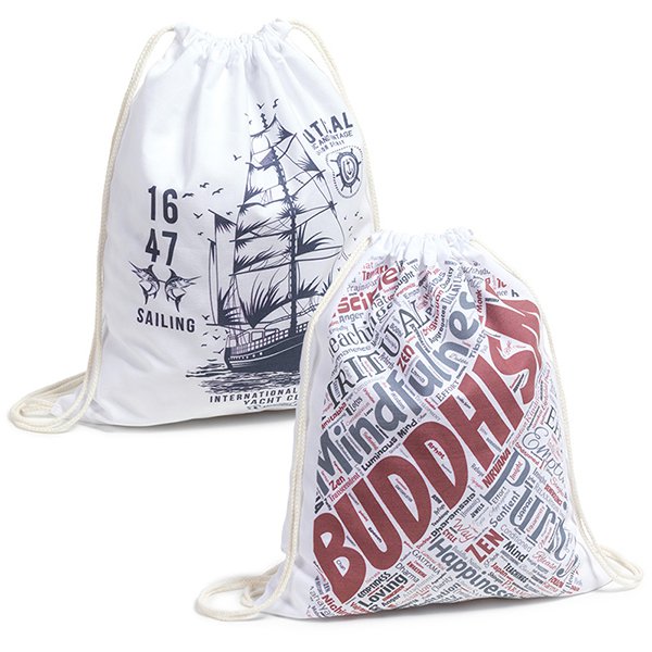 1. 純棉布後背包,採用100%染白純棉,印刷色彩鮮豔,適合企業禮贈。