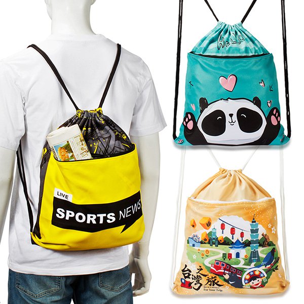 斜紋布後背包-150D/前拉鍊袋-雙面彩色束口背包