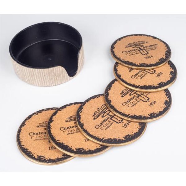 質感天然軟木杯墊-一套6件-圓形11cm