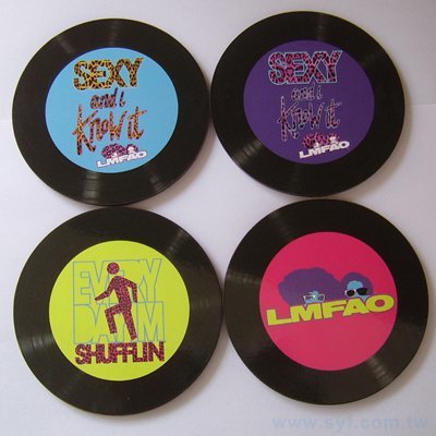 黑膠唱片造型杯墊-矽膠杯墊客製-可客製化印刷LOGO