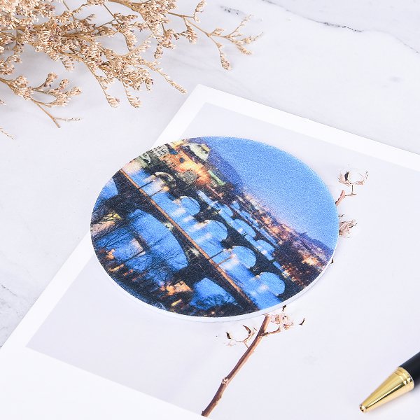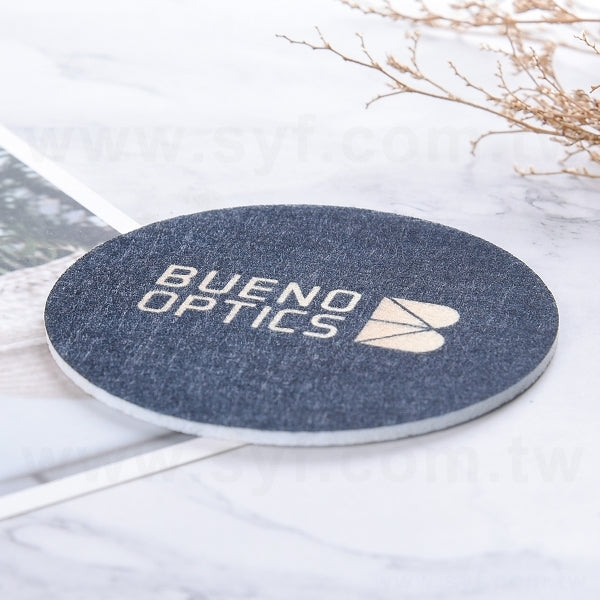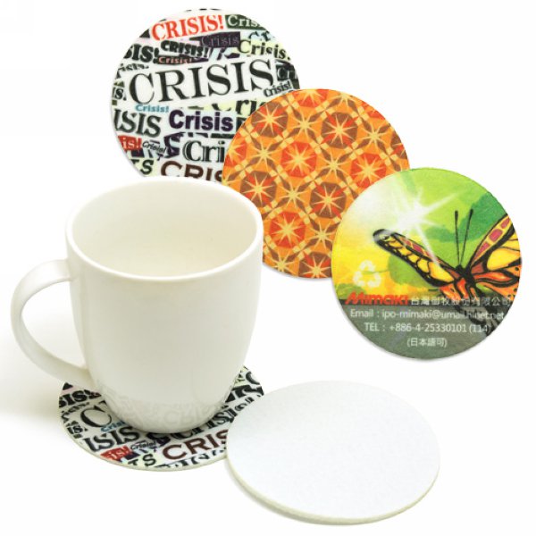 1. 圓形毛氈杯墊,3mm厚度,單面彩色印刷,專為企業客製化禮贈品而設計。
