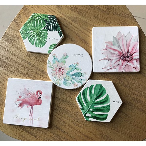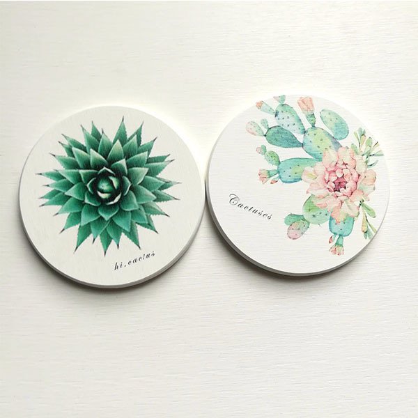 1. UV印刷環保耐熱珪藻土吸水杯墊,尺寸為10*10*0.9cm,客製化設計,矽藻土材質天然環保,符合環保理念。