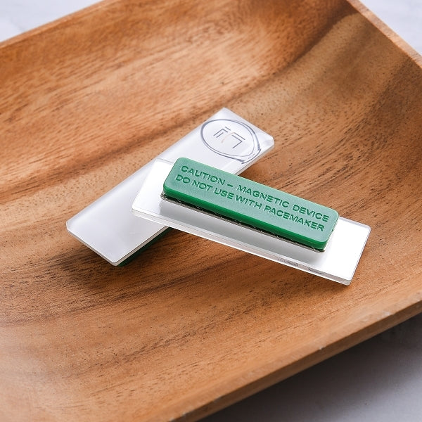 1. 獨特設計的磁吸式胸牌,尺寸6x2cm,活動必備。