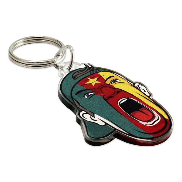 1. 壓克力鑰匙圈,透明設計,可客製化切型,適合作為企業贈品。