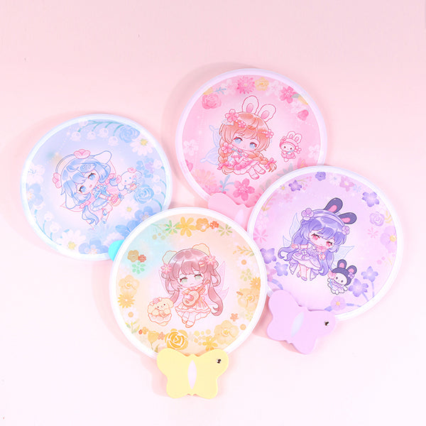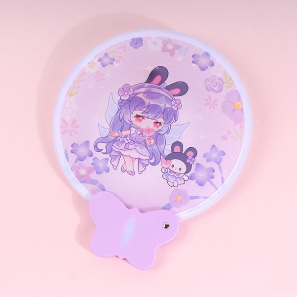 蝴蝶造型手柄摺疊扇-直徑20cm附收納袋