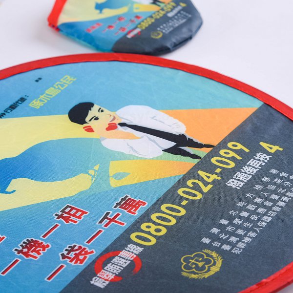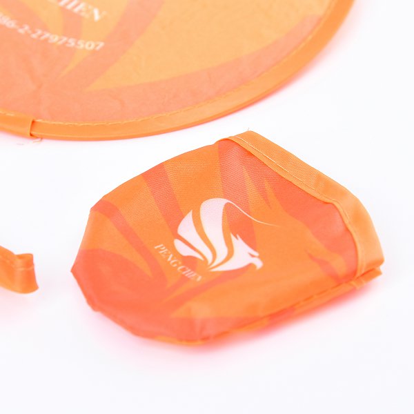 - 尼龍口袋折疊飛盤扇,輕巧方便,適合戶外活動使用。
