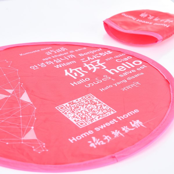 - 尼龍口袋折疊飛盤扇(基本款)直徑25cm,適合企業機關禮贈使用。