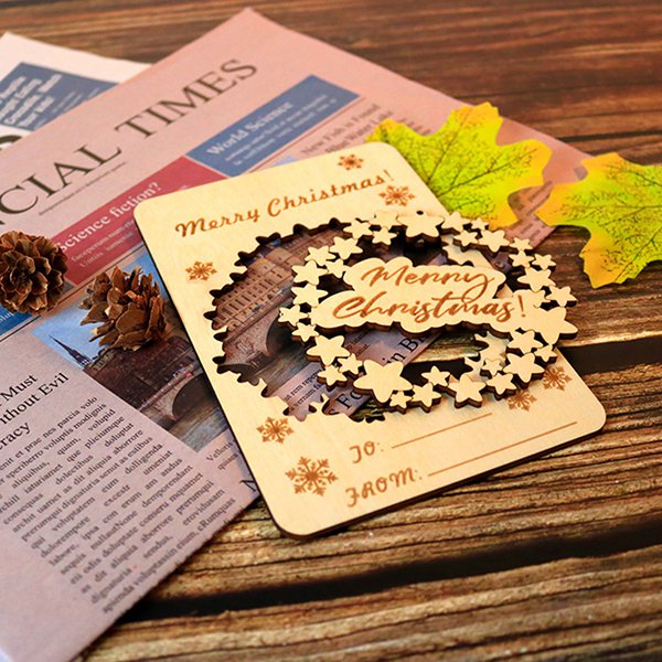 1. 聖誕節專屬木製立體明信片,尺寸15x10cm,厚度4mm,展現高雅質感和堅固耐用特性。