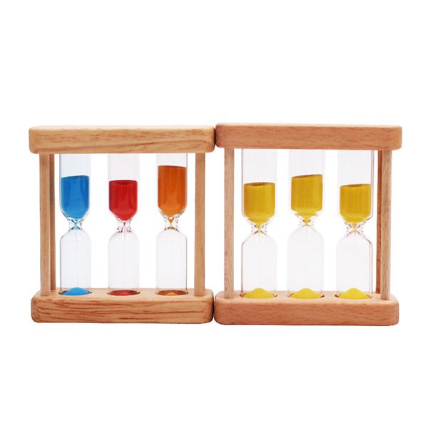 1. 木製3管沙漏計時器,尺寸為9*9.5cm,外觀精美,適合放在辦公桌或家中使用,有效管理時間。