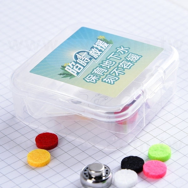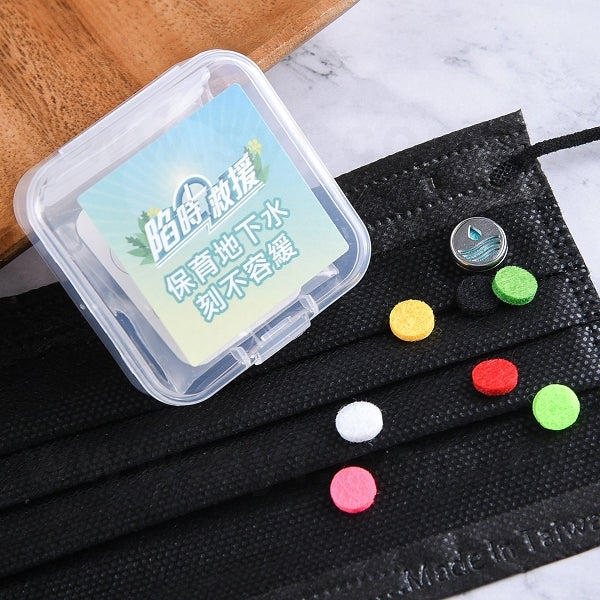 口罩香氛扣組-精油擴香磁釦+塑膠透明盒-客製化印刷LOGO-防疫新生活