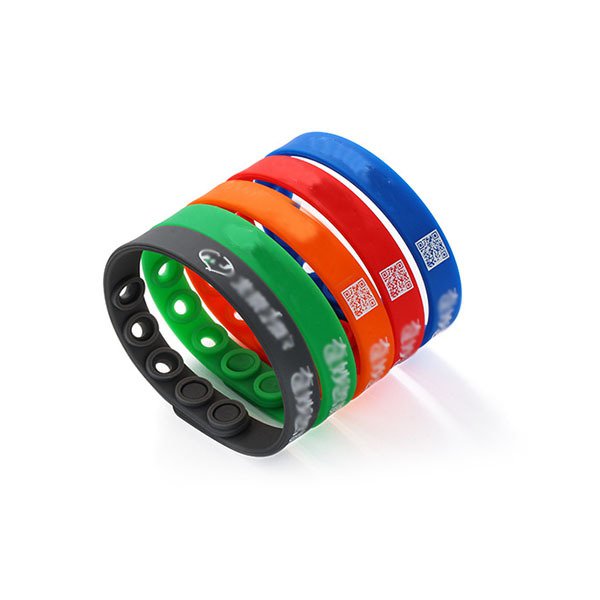 1. 扣式矽膠運動手環,採用高品質矽膠材質製成,輕巧舒適,適合長時間佩戴,提供良好的佩戴體驗。