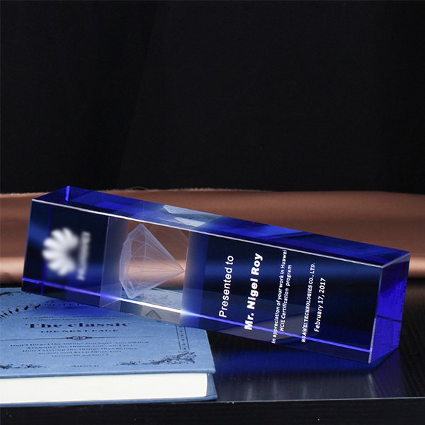 1. 3D雕刻藍色水晶獎杯,展現專業風采,適合表彰優秀成就。