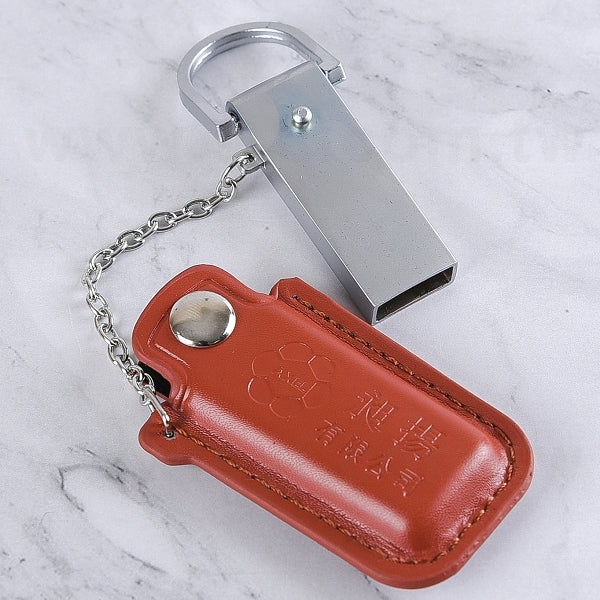 1. 皮製隨身碟-鑰匙圈禮贈品,金屬加皮革材質提升質感,展現專業形象。