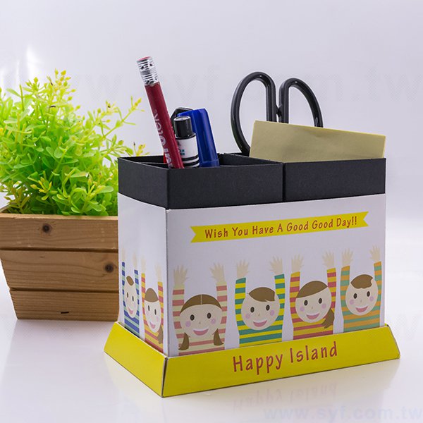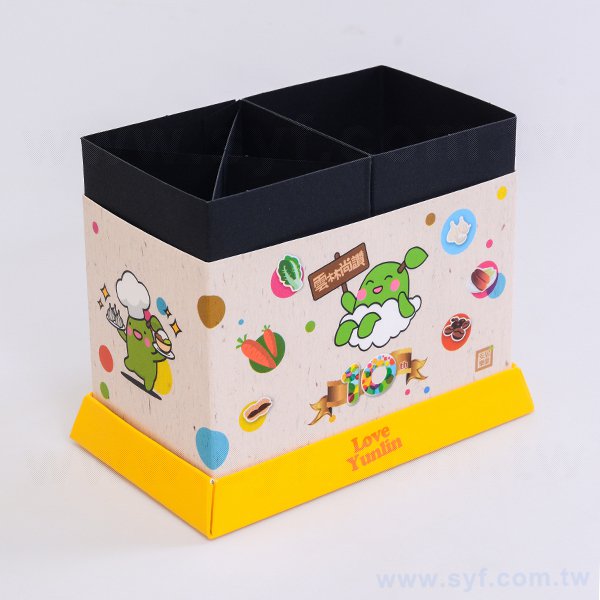筆筒-亮膜二格筆筒0.41mm客製化筆座-彩色印刷-辦公收納創意筆筒