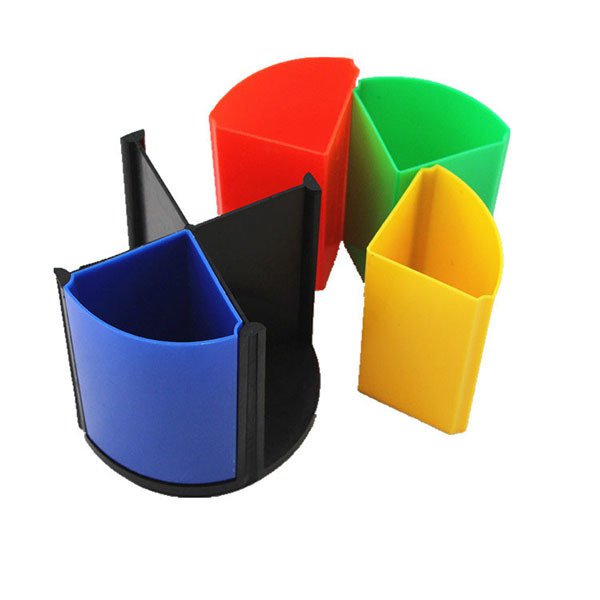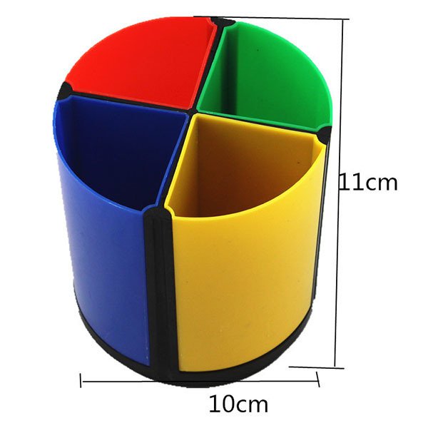 1. 彩色四格旋轉塑膠筆筒,尺寸為11*10cm,適中容納各式文具,方便攜帶使用。