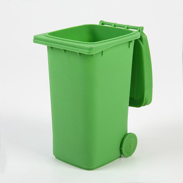 1. 趣味垃圾筒造型PP筆筒,尺寸為9.8*7.8*14.5cm,重量輕巧75g,方便攜帶使用。