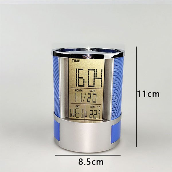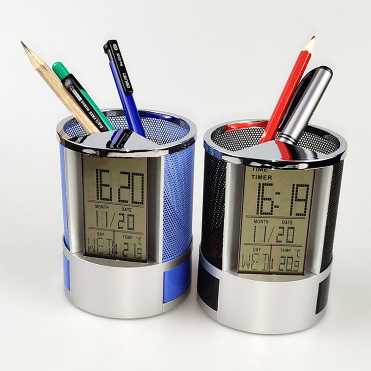 1. 多功能溫度計數字鬧鐘筆筒,結合時間、日期、溫度、鬧鐘功能,方便辦公使用。