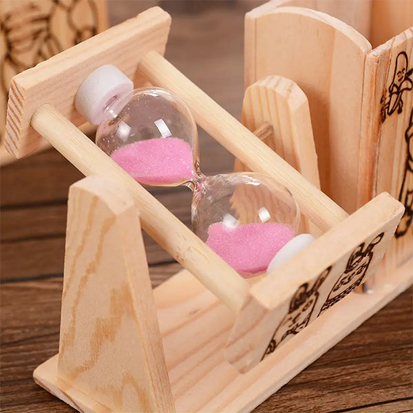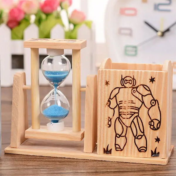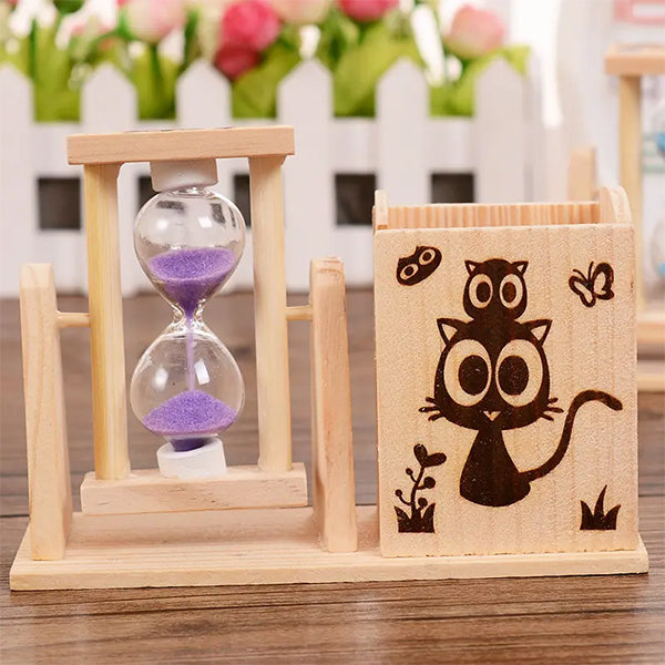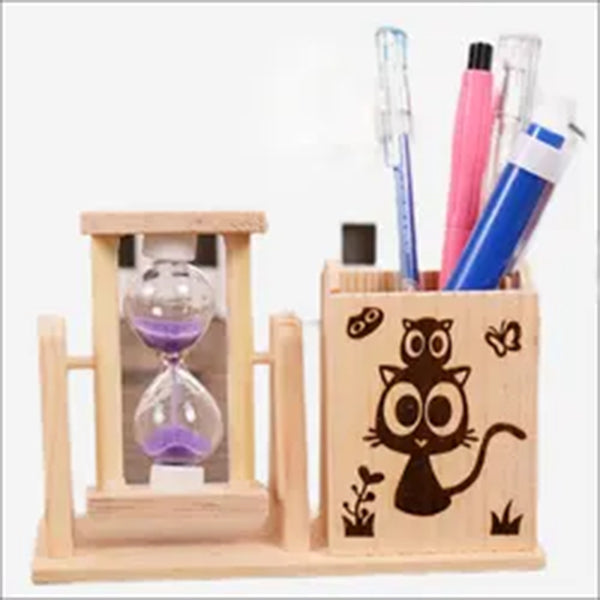 沙漏的實木筆筒- 木頭 9.5*13.5*4cm