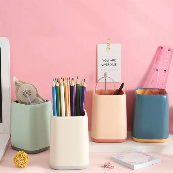 1. 時尚設計的雙色拼接筆筒,適合辦公室或家中使用。