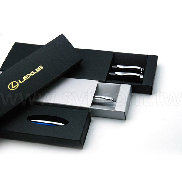 1. 高質感紙盒,耐磨擦防汙水,內附筆夾保護禮品筆不受損,輕巧多變,可客製化加印LOGO,提升宣傳效果。