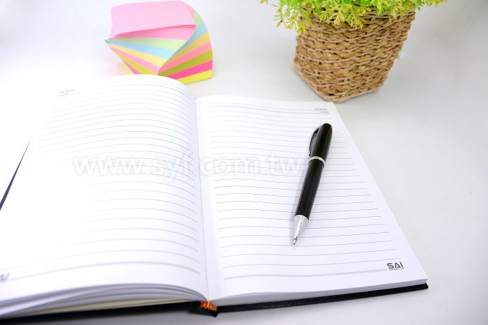 筆記本-尺寸25K黑色柔紋紙精裝-封面燙印+模造紙內頁-客製化記事本