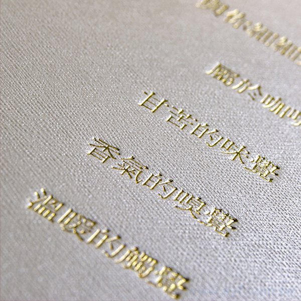 3. 封面燙金印刷方式,裝訂方式為左翻方背精裝/加書頭布,蝴蝶頁為150g白道林紙。