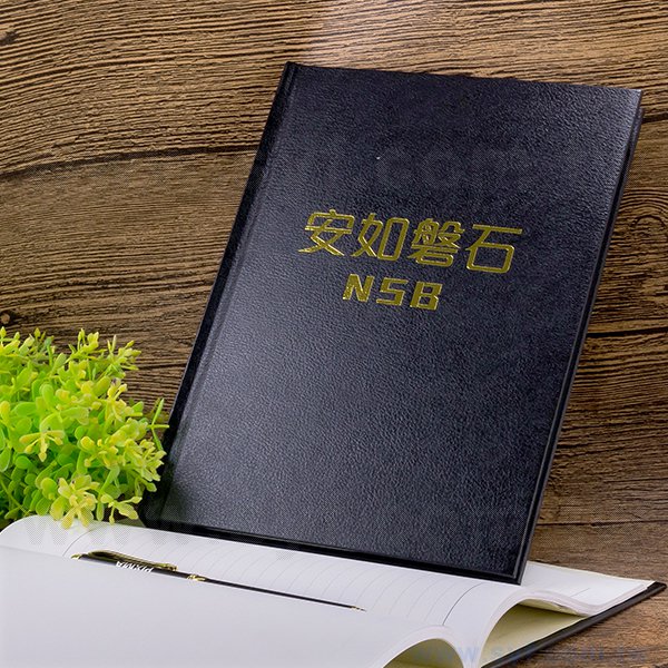 筆記本-尺寸25K黑色亮面粗皮紋方背精裝硬殼-封面燙印-客製化記事本