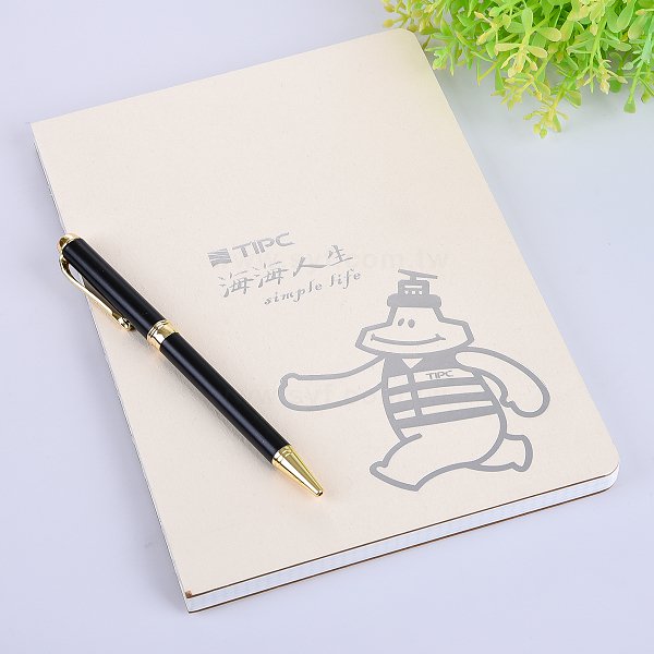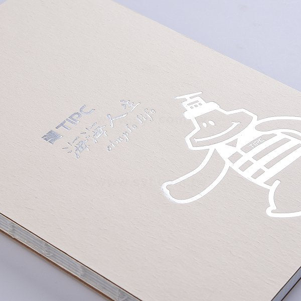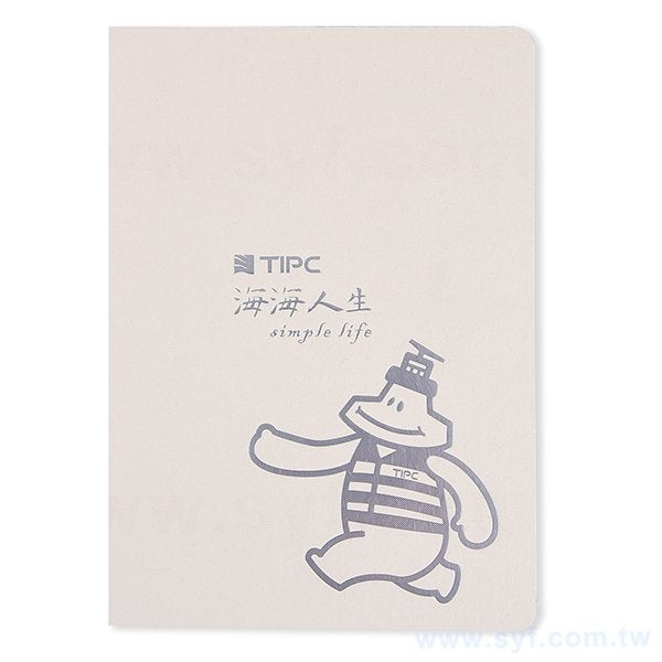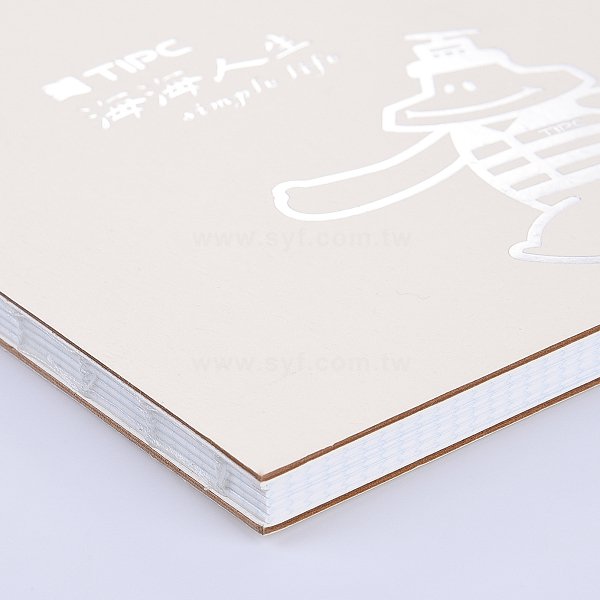 筆記本-尺寸25K裸背穿線精裝-封面白色麻絲紙燙印-客製化記事本-推薦款