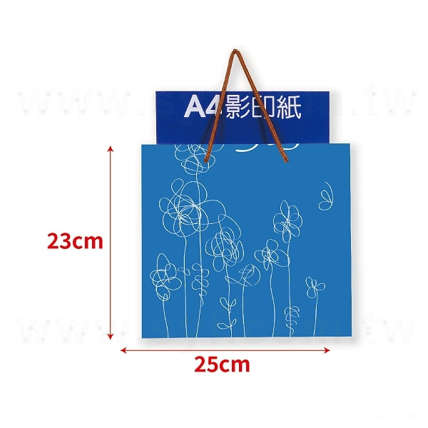 1. 三開120g白牛皮彩色印刷紙袋,尺寸為W25XH23XD12cm,適合企業客製化設計。