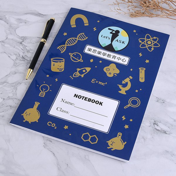16K騎馬釘筆記本-200P銅版封面單面彩印上亮膜-學校專區-樂思文理補習班