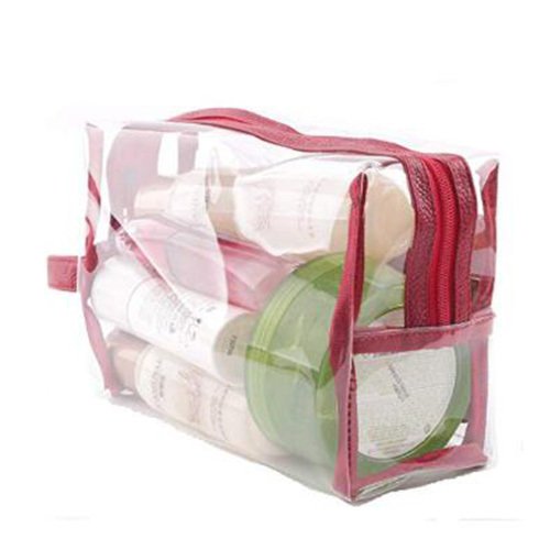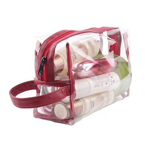 1. 大容量PVC透明旅型化妝包,尺寸為25.4X15.24X10公分,方便收納各式化妝品。