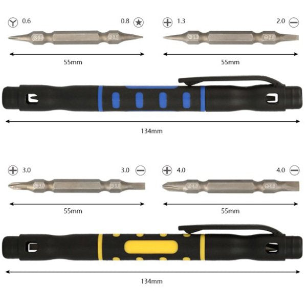 1. 多功能設計,3合1螺絲刀工具筆,小巧方便,適用於家庭、辦公室、車用等各種場景使用。