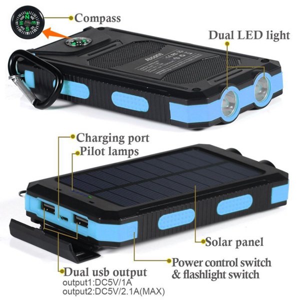 1. 8000mah-ABS防水太陽能手電筒行動電源,提供充電和照明功能,適合戶外活動使用。