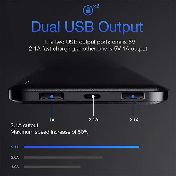 2. 具備兩個usb輸出口,可同時為兩台設備充電,效率倍增。