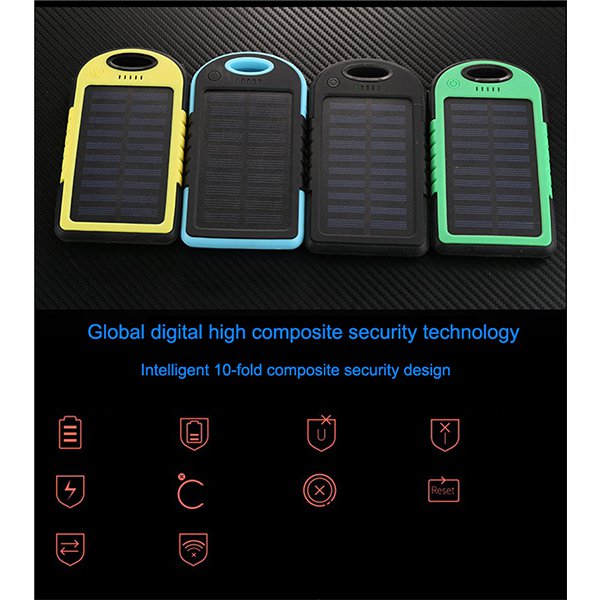 1. 10000mAh防水太陽能行動電源,尺寸為144*74*18mm,重量為200g,材質為ABS/PC/防火塑膠。功能強大,具有防摔、防震、防塵功能。