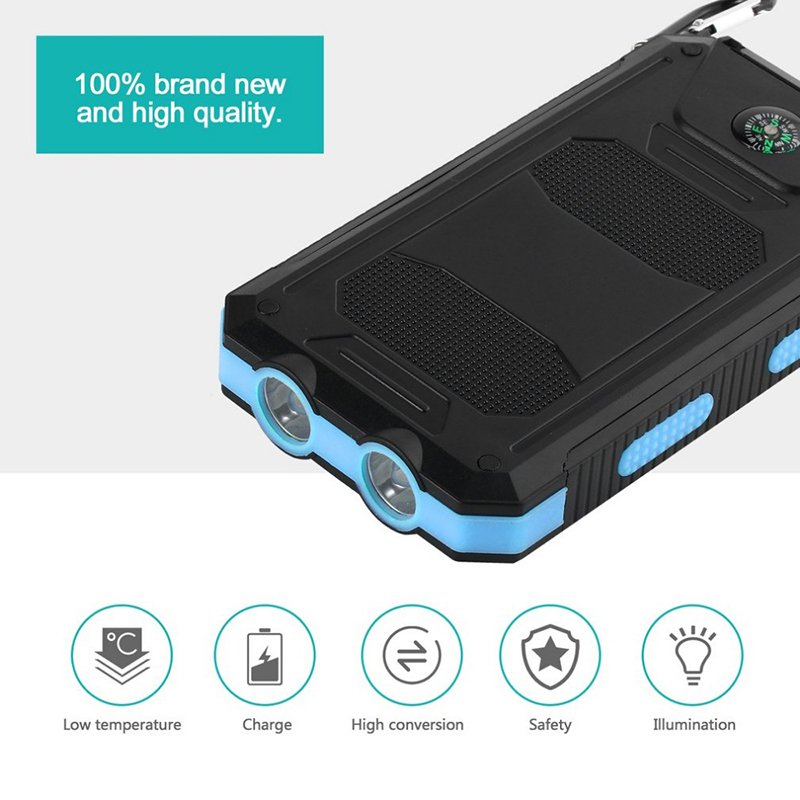 1. 20000mAh雙LED燈行動電源,外殼採用優質ABS PC材質,防水設計,適合冒險旅行和戶外活動使用。