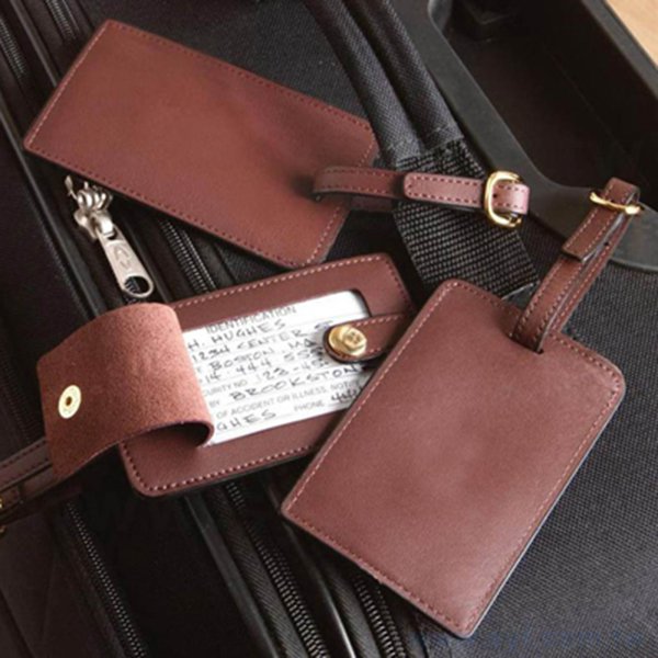 1. 仿真皮行李吊牌-掀蓋款,尺寸為85x115mm,精緻工藝,品質保證。