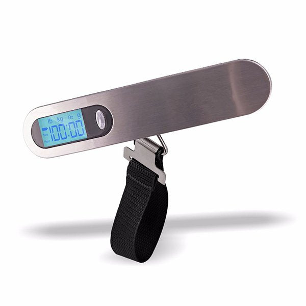 1. 手持式綁帶行李秤,LCD顯示屏帶背光,支援多種重量單位轉換,方便易讀。鋁合金材質,堅固耐用,最大承重50kg,精準稱重200g。