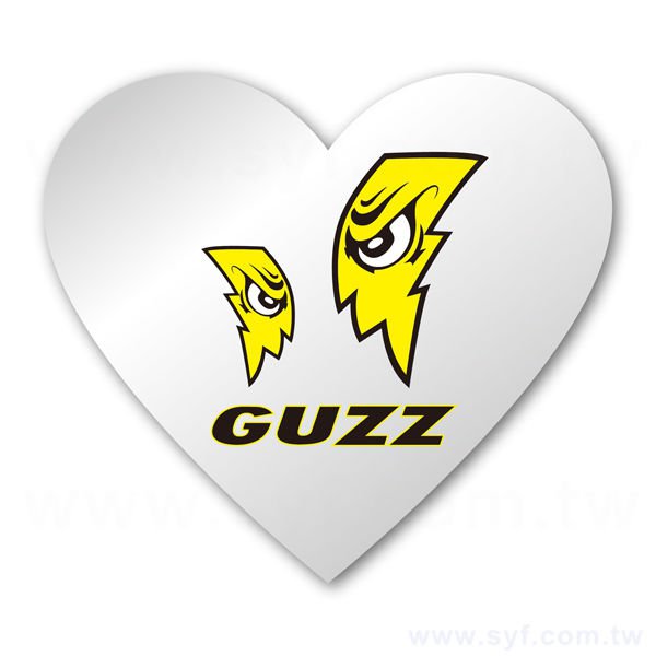 1. 亮面金屬貼紙,心形設計,適合貼合於機械製品,展現專業品質。