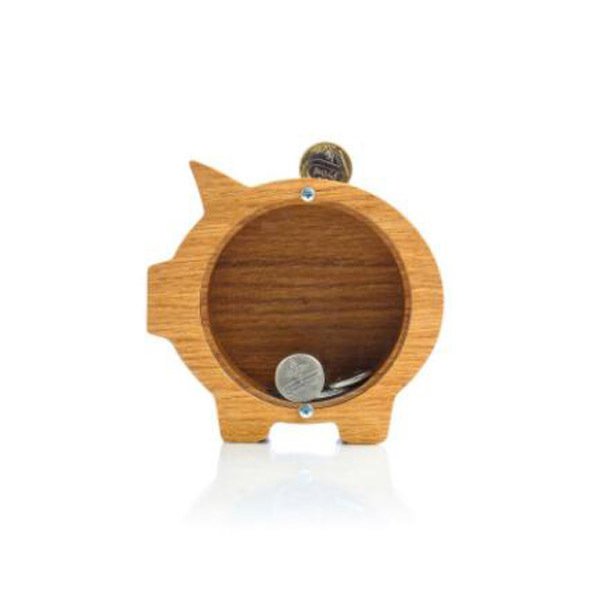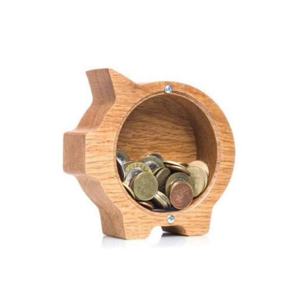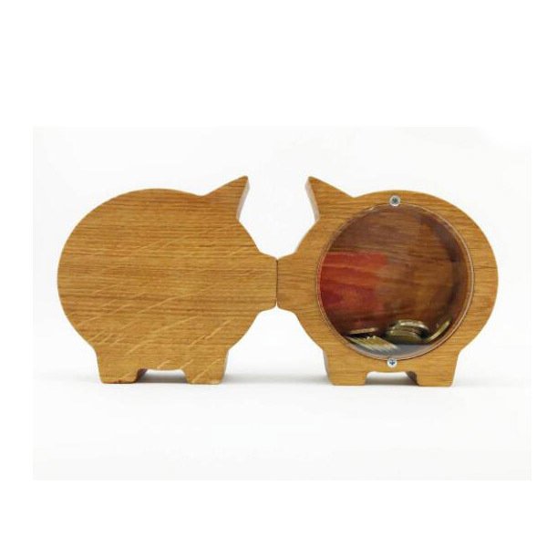 豬造型撲滿-木製單面透明存錢筒