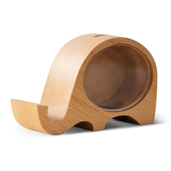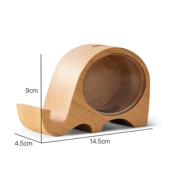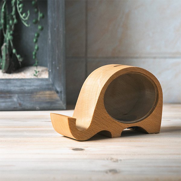 1. 大象造型撲滿-木製單面透明存錢筒,採用木頭材質,尺寸為14.5*9*4.5cm,獨特造型設計。