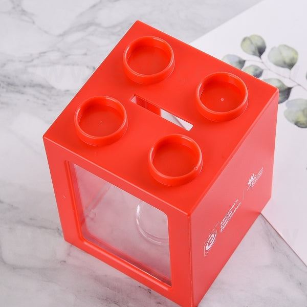 1. 積木撲滿尺寸為8x8cm,高10.5cm,可堆疊組合,方便收納使用。