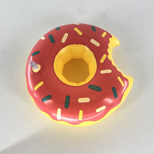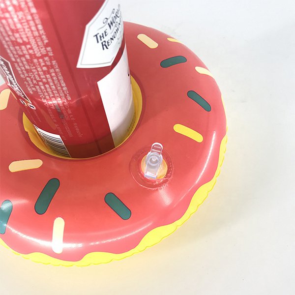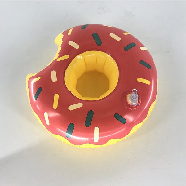 1. 可愛甜甜圈造型充氣杯架,材質為PVC,尺寸20*20cm,厚度0.13mm,輕巧易攜帶。