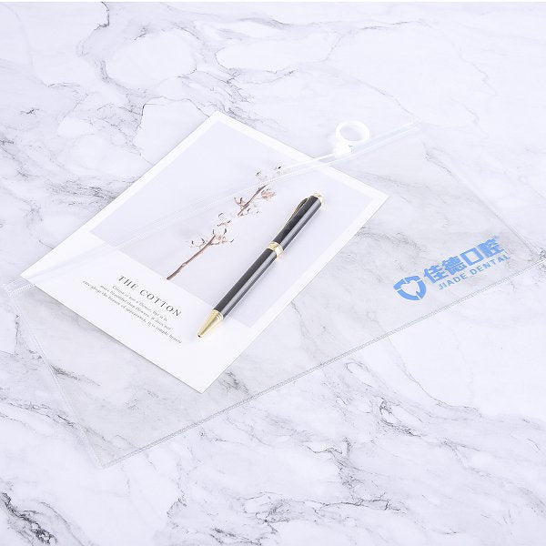 1. PVC透明夾鏈袋尺寸31x15公分,單面單色印刷,方便收納文件資料,專注會議重點。