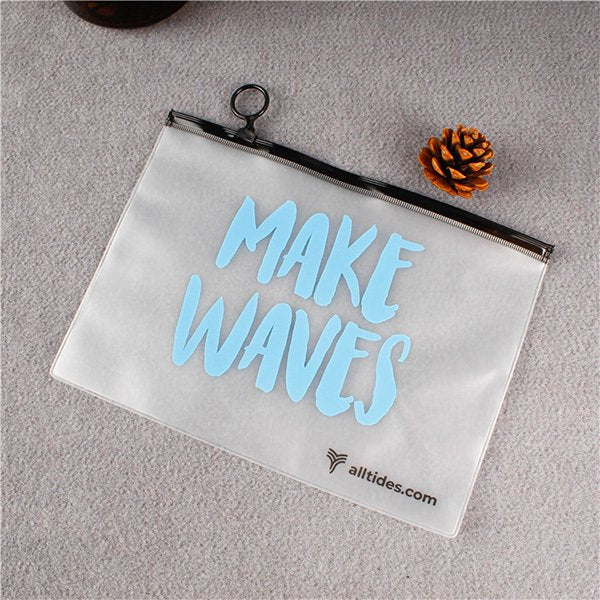 1. PVC磨砂拉鍊袋,尺寸26x14cm,黑色圓圈拉頭,質感十足。厚度25絲,堅固耐用。